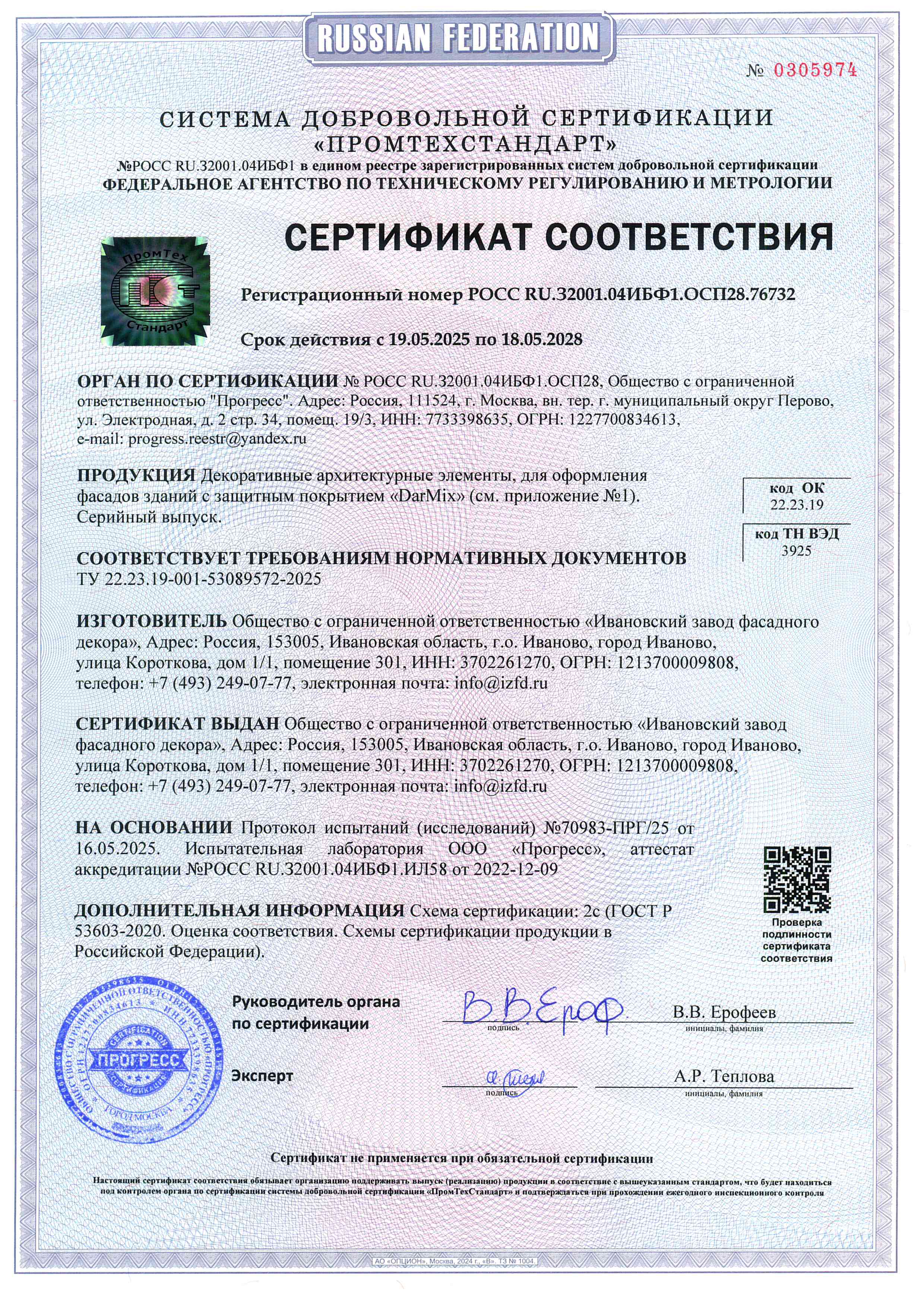 Вся продукция нашей компании сертифицирована и проходит жесткий контроль качества на всех этапах производства